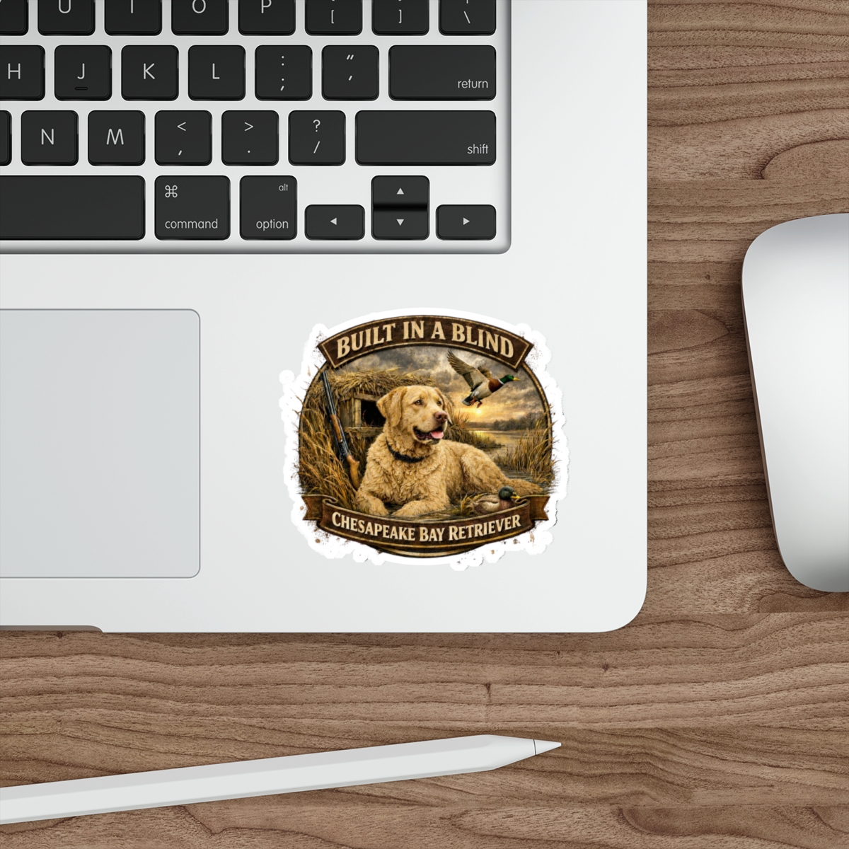 Show your Chesapeake Bay Retriever pride with the Built in a Blind deadgrass Chessie design.